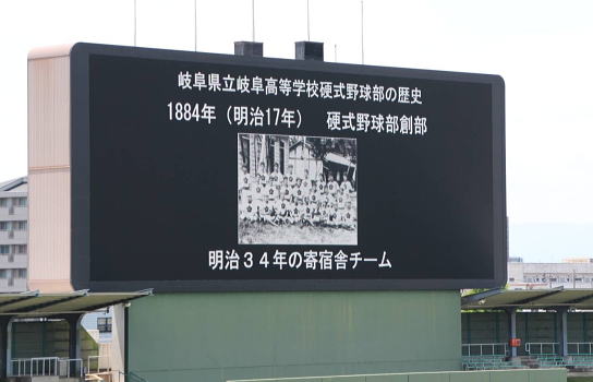 | スコアボードに表示された岐高野球部の歴史 |
